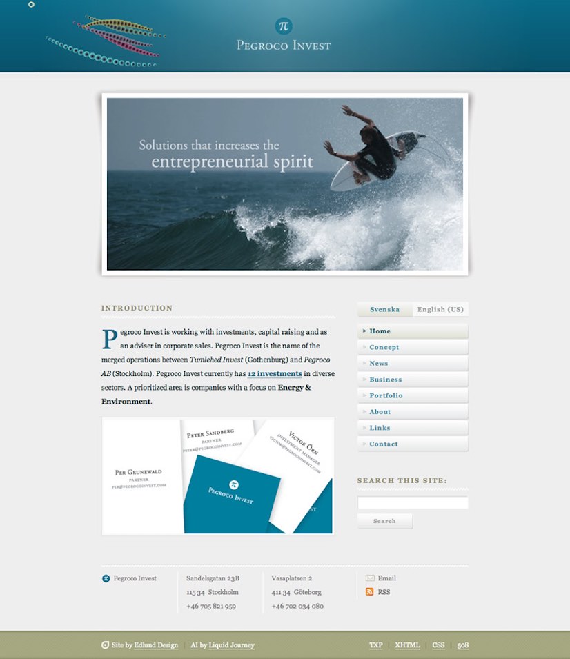 UX-design an front-end development. Flash and ActionScriptning. Logotype. Business cards. Custom Textpattern theme.